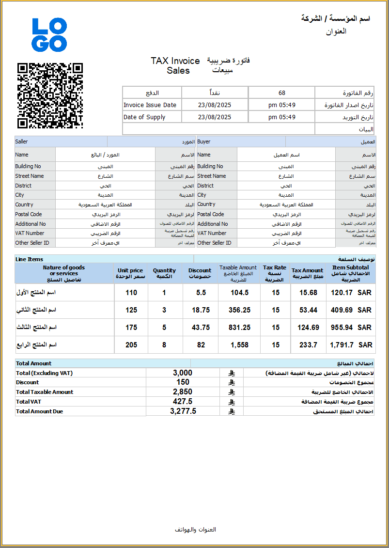 تضمين رمز الاستجابة السريع المعتمد من هيئة الزكاة والضريبة